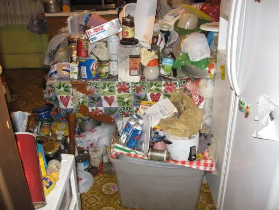 They threw away most all the food. When it was somewhat clean I cleaned off the counter tops and the sink.